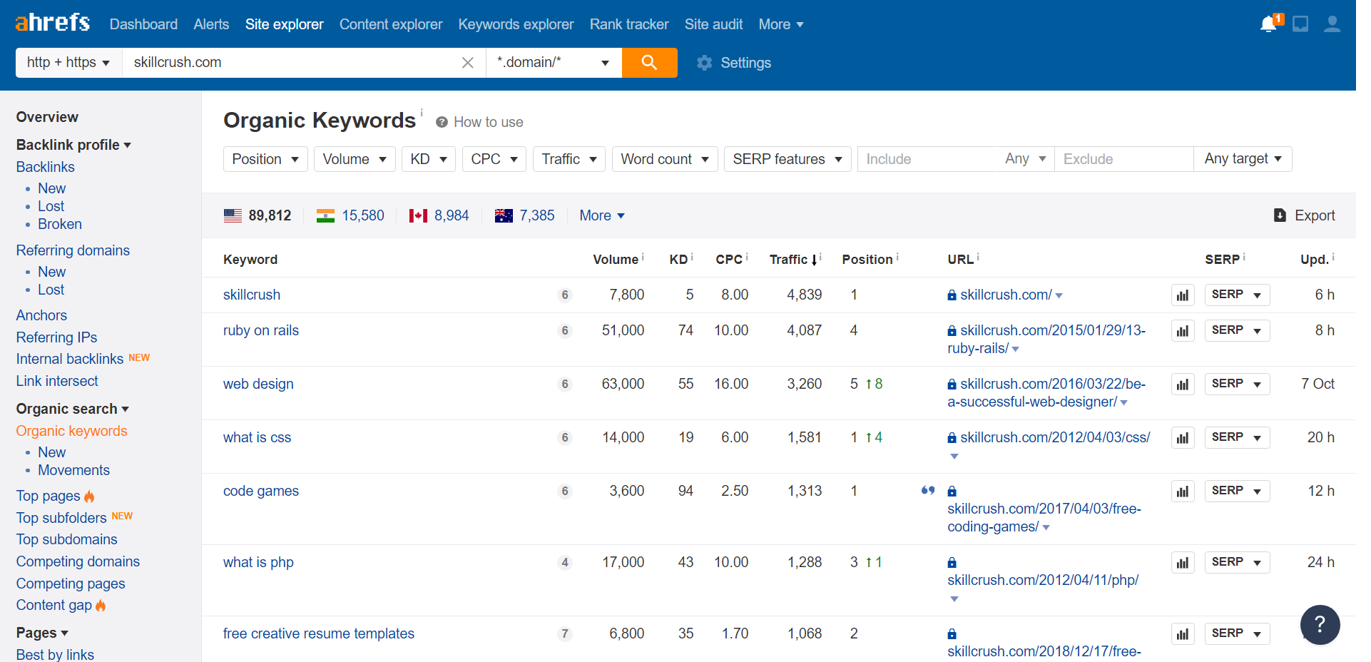 When we took on Skill Crush as a client, they had around 55,000 visitors coming to their website already and were ranking for about 10,000 keywords in Google. They wanted to become an authority in their niche and they came to the right company! In the course of 6 months, we took them from 55,000 visitors and 10,000 keywords to 200,000+ visitors a month and over 100,000 keywords in Google and the impact was huge, to say the least. Lot’s of new sign-up and most of all, lots of new sales! In the next 6 months, we estimate their traffic level should around the 800,000 mark due to our continued SEO efforts.